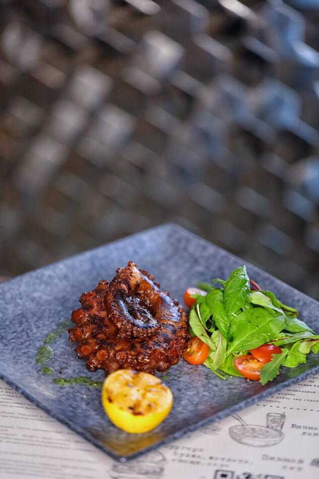 "Заглянули большой компанией в обед воскресенья. Пришли - не было никого, а буквально через час уже не было свободных мест. Обслуживание - вежливое и приятное, официантка хорошо ориентировалась в меню. Приятное и атмосферное место. Шикарные блюда, красиво подают."